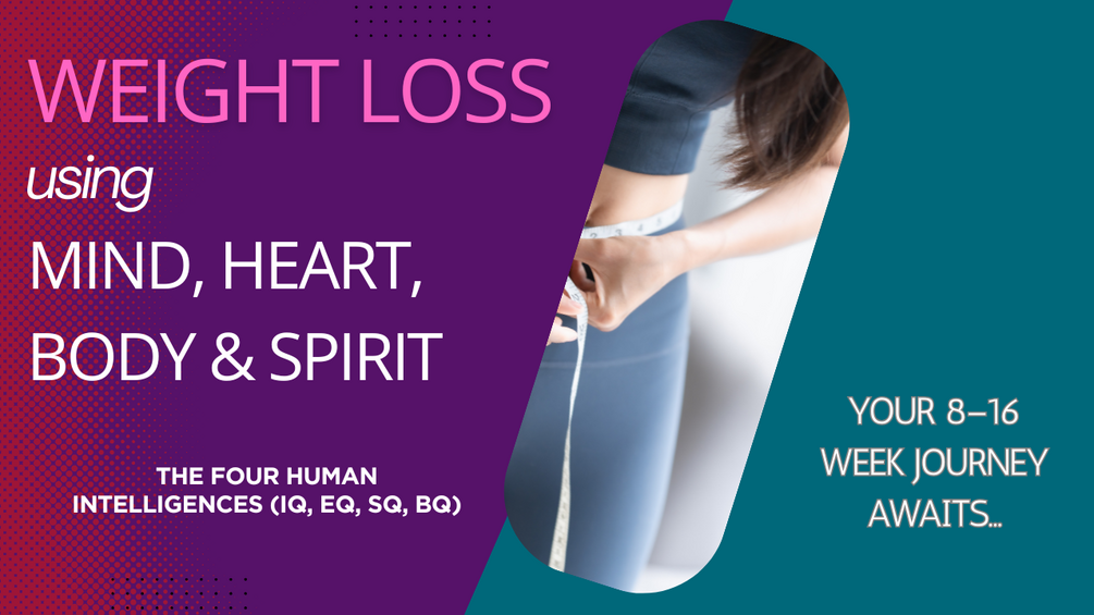 A gentle, structured weight-loss program for women using the four human intelligences (IQ, EQ, SQ, and BQ)—so you can find a process that fits you, reduce resistance, and create steady results that last a lifetime.